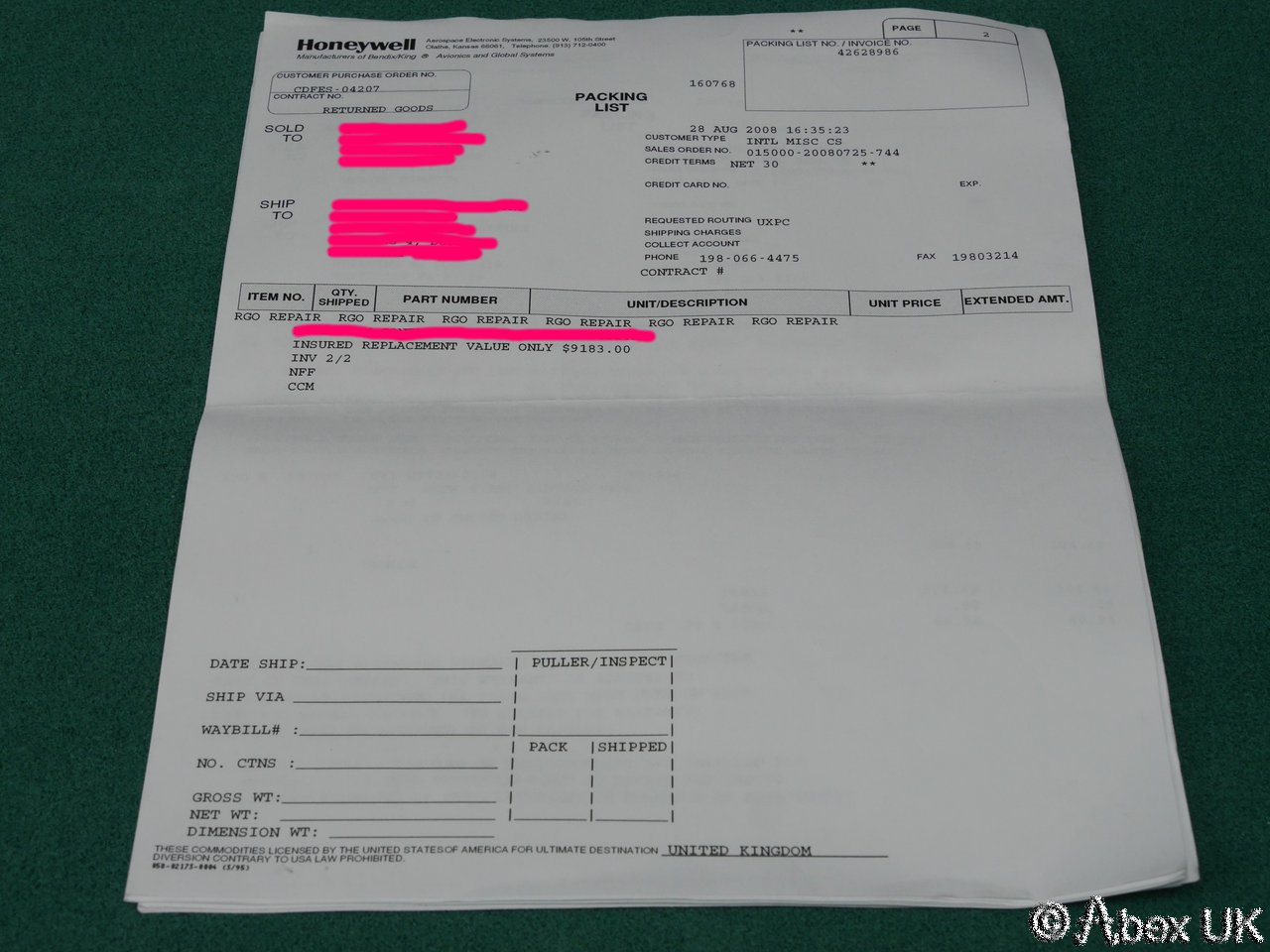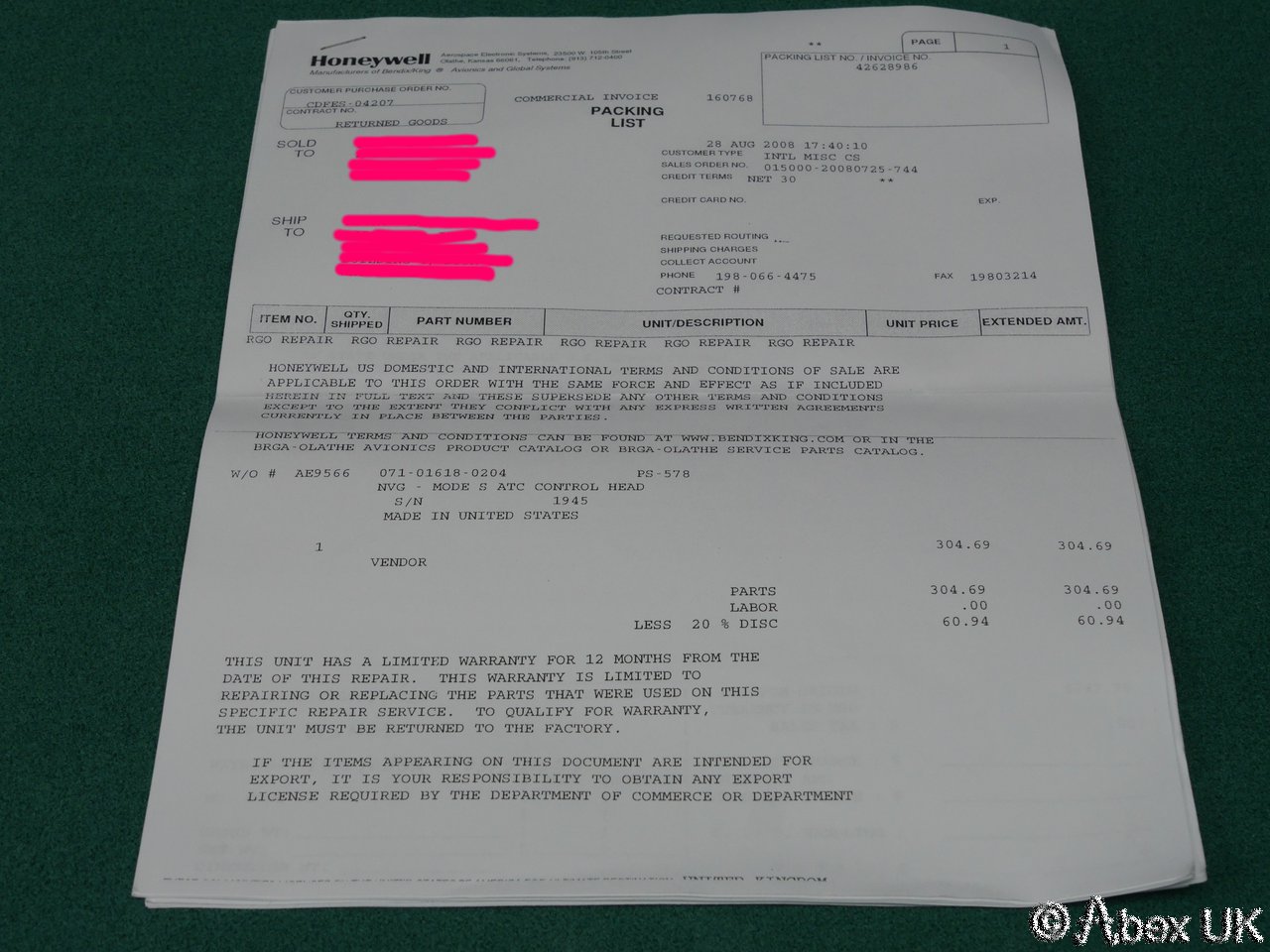 Honeywell PS-578A Control Head, ATC/TCAS/FID. Unit appears to be unused. Repaired by the manufacturer (RGA?), then never used.