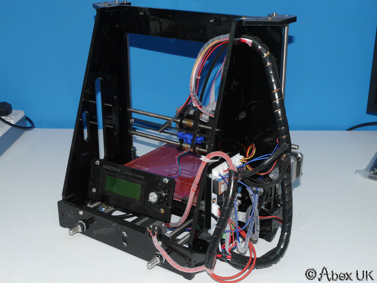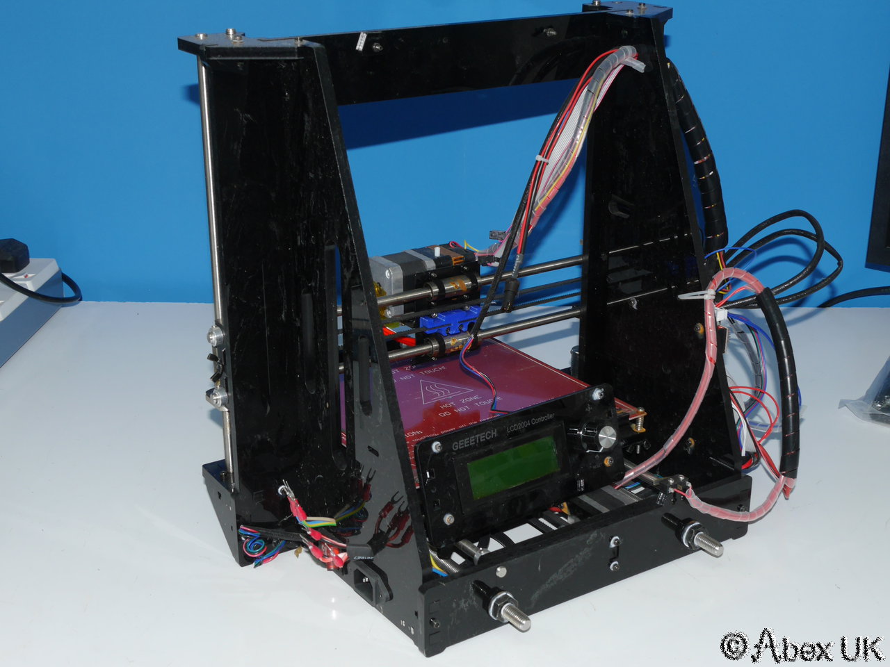 A Geeetech I3 3d Printer offered for repair or spare parts only. The power supply unit is missing. The control panel brackets are broken. May have other faults or parts missing. History unknown.