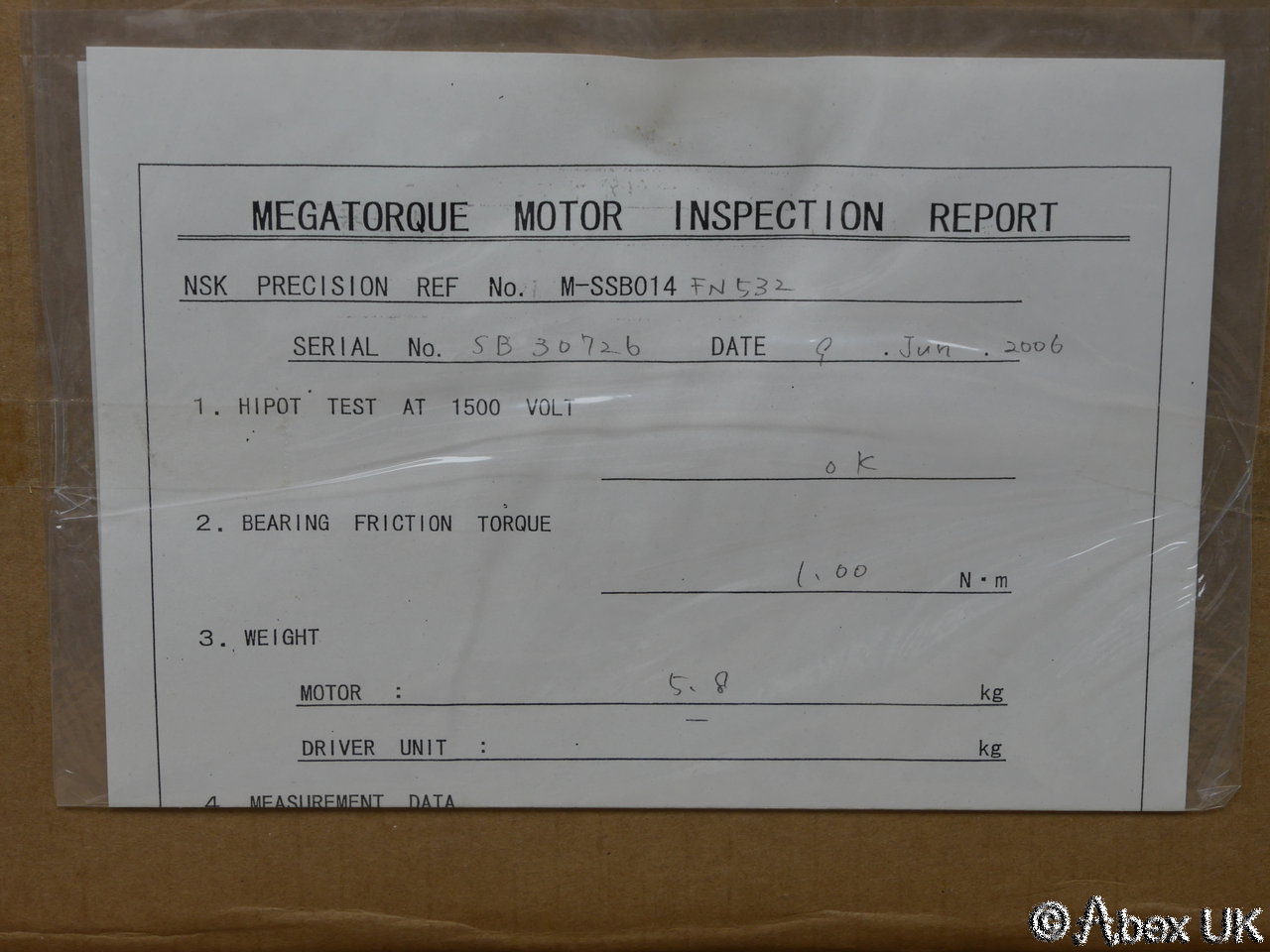 NSK SSB014FN532Megatorque Motor(Serial Number sb30726 , Stock Number s03380) |