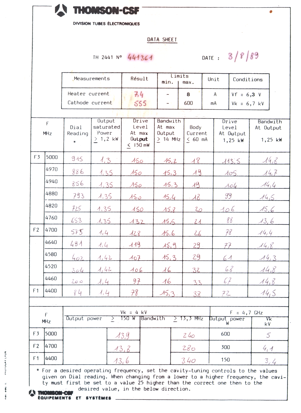 Thomson TH24414.4-5.0GHz Klystron Amplifier 1.3kW(Serial Number 441361 , Stock Number s02935) |