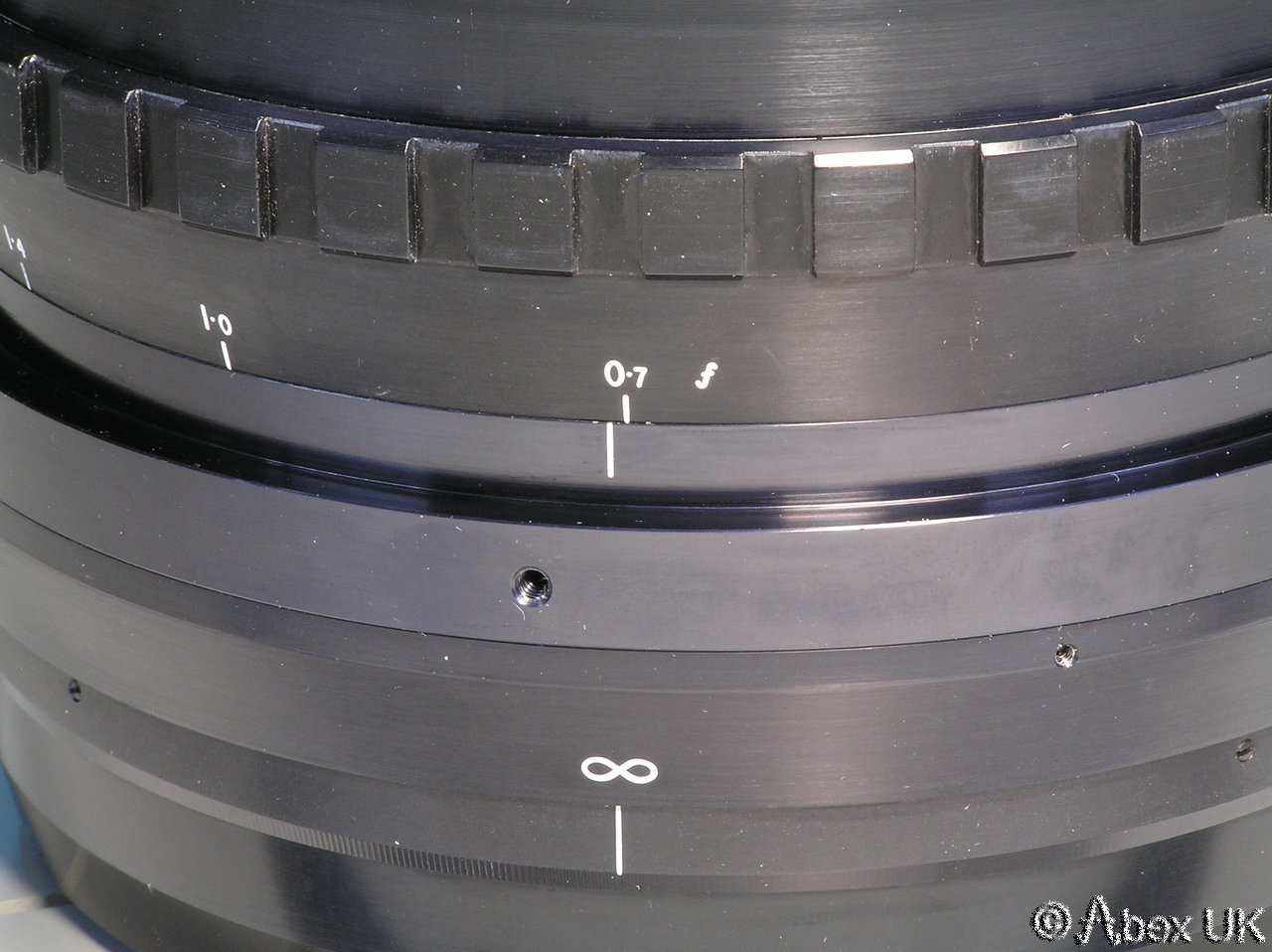 There is an aperture adjustment ring, with settings from F0.7 through to F4. There is a focus ring with settings from 5 feet to infinity. The body has a threaded rear mounting and a matching adaptor ring is fitted.