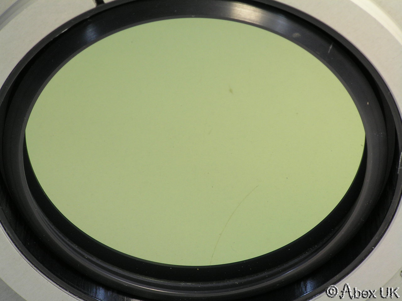 This item is a very large and very fast germanium objective lens for a thermal imager or thermal imaging camera. The focal length is 100mm, and the maximum aperture is F0.7 The front element is more than 14cm in diameter. Made by Rank-Taylor in the UK.