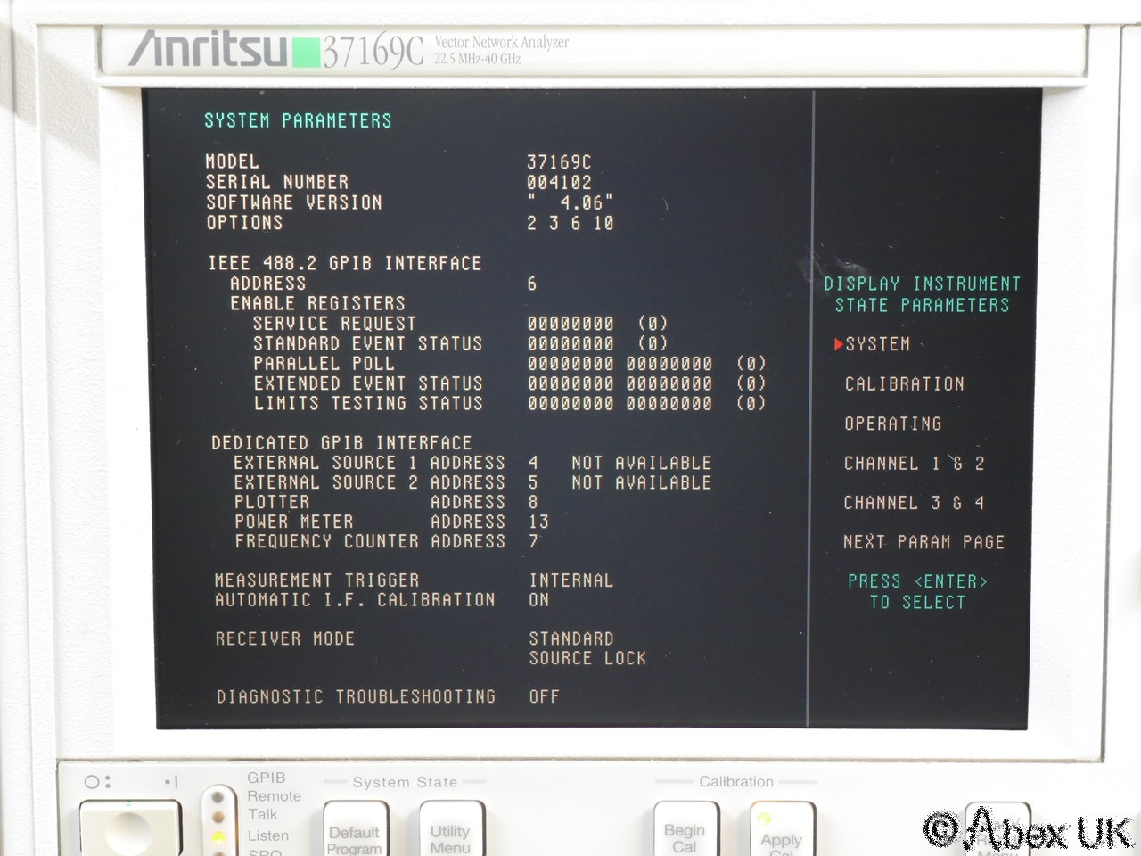 Anritsu (Wiltron) 37169C40GHz Vector Network Analyser(Serial Number 004102 , Stock Number s02907) |