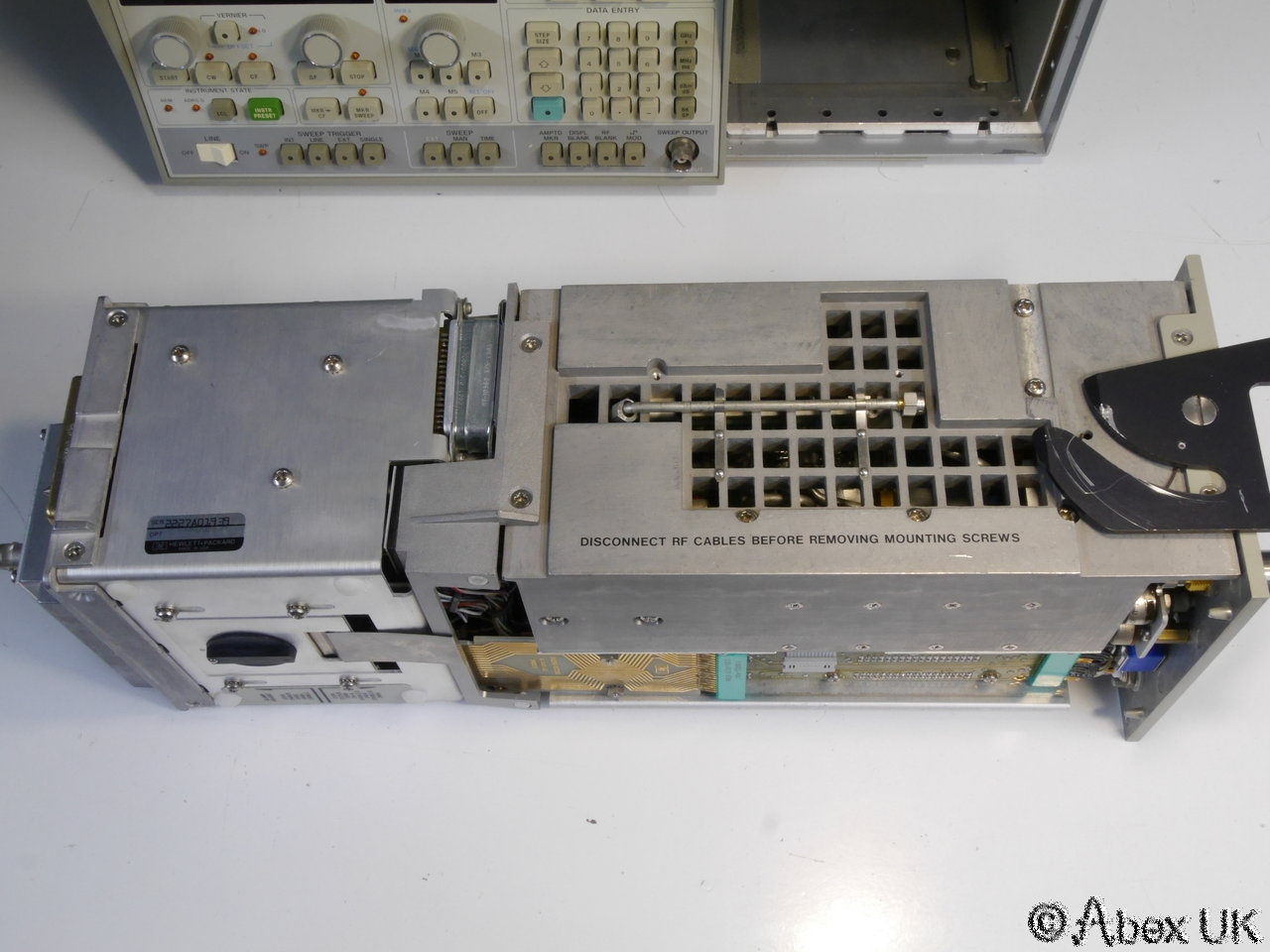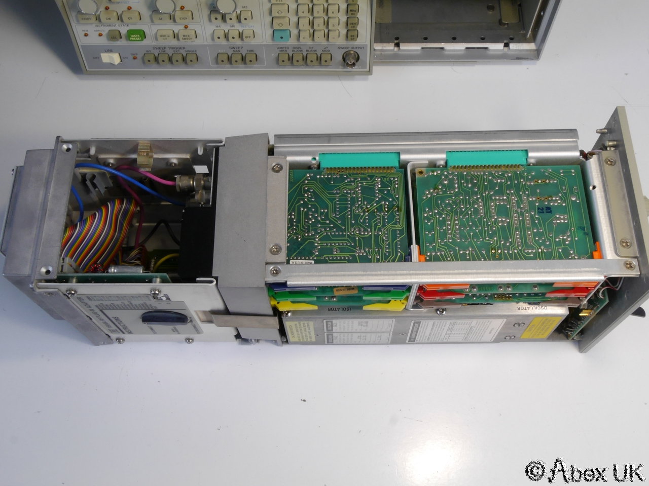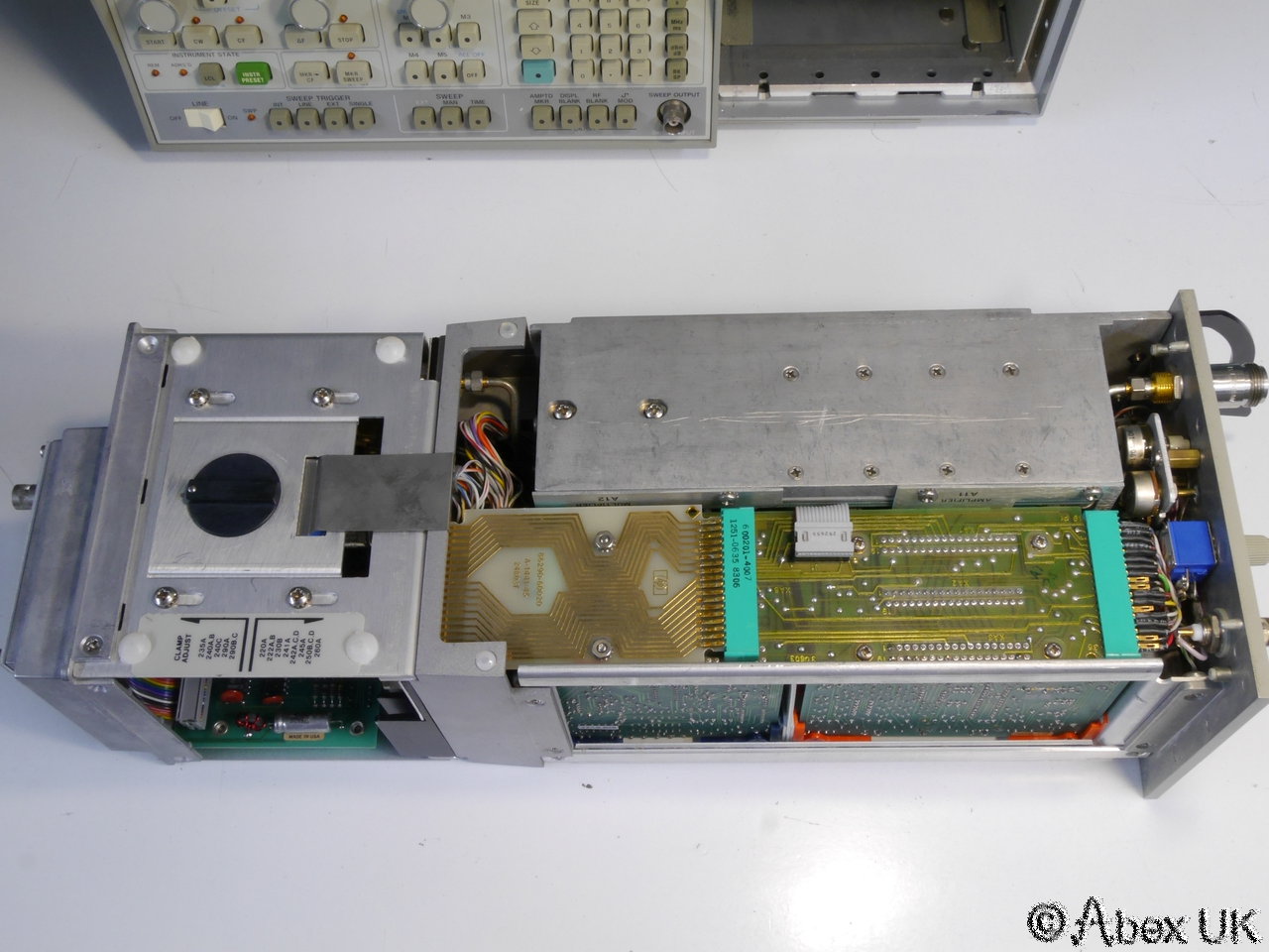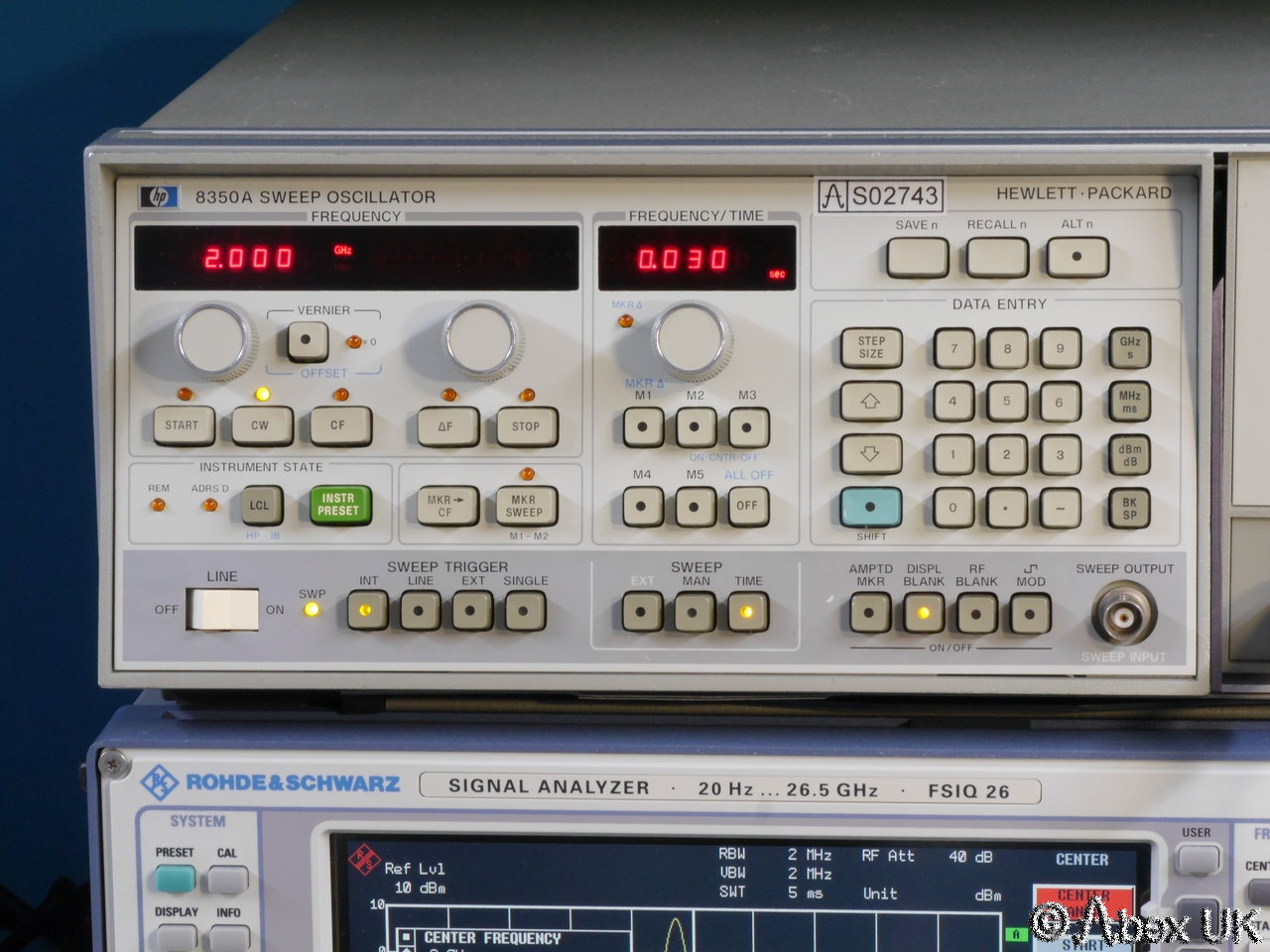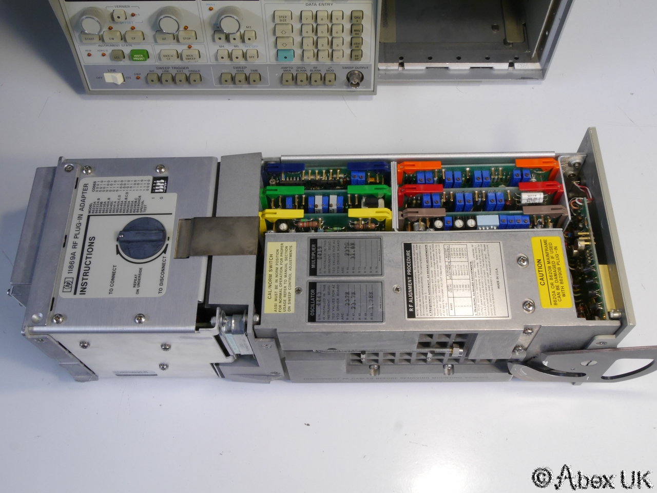 This is a complete HP (Agilent) 8350A sweep generator with an 86290C plug-in and 11869A adaptor, covering 2.0-18.6GHz. This unit is in good cosmetic condition and in good working order as shown below.