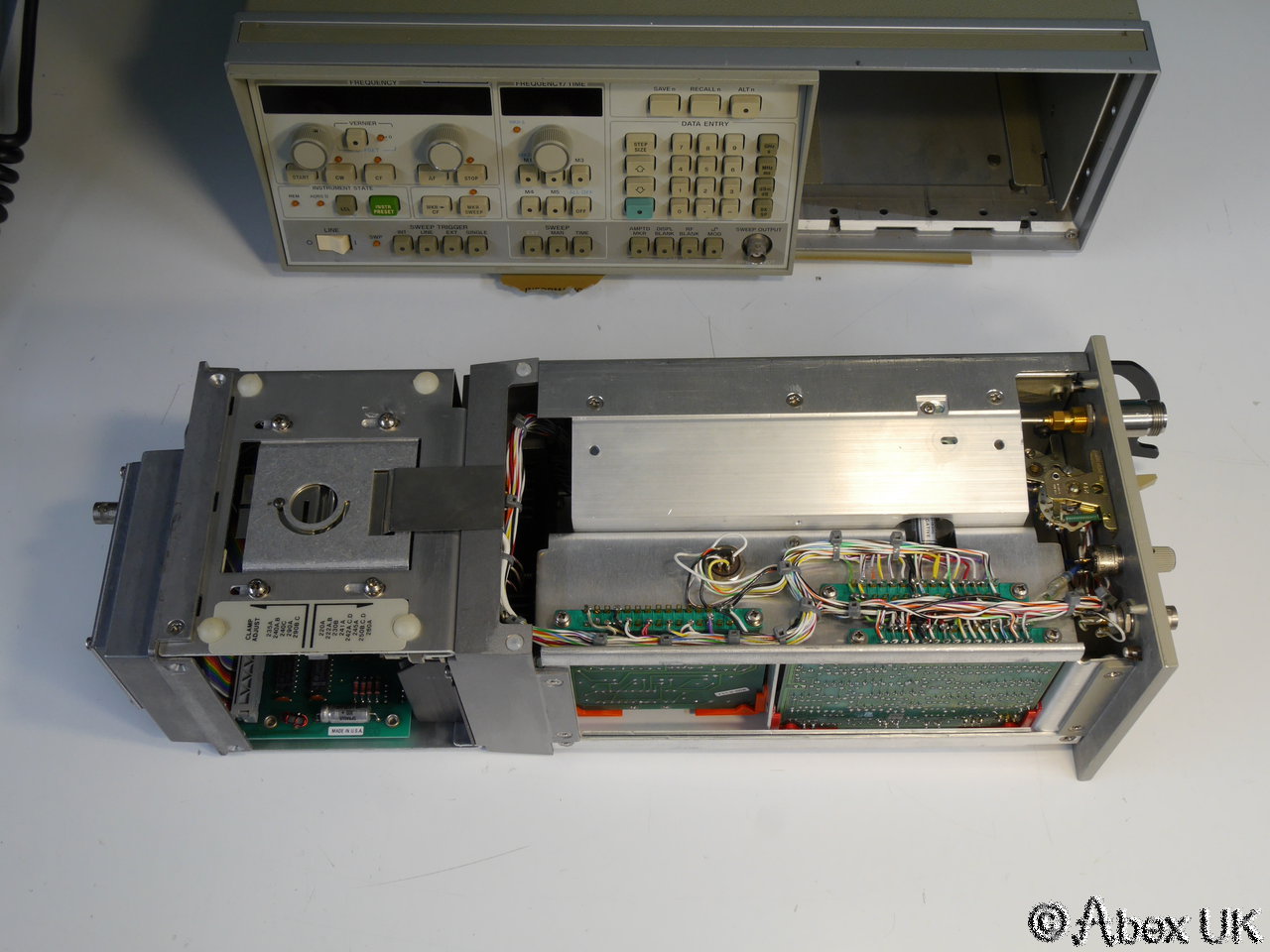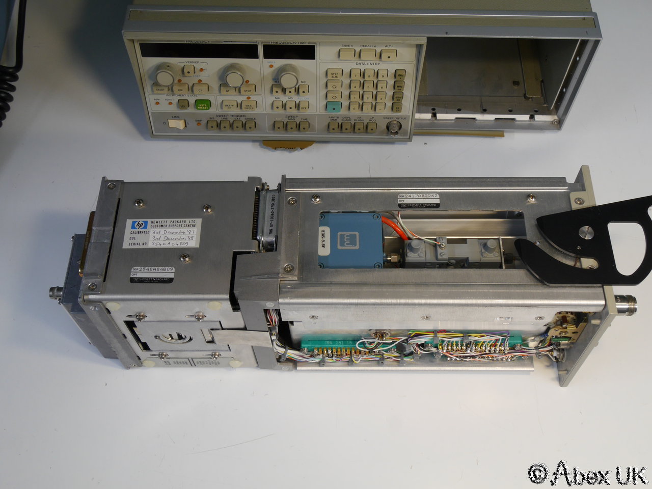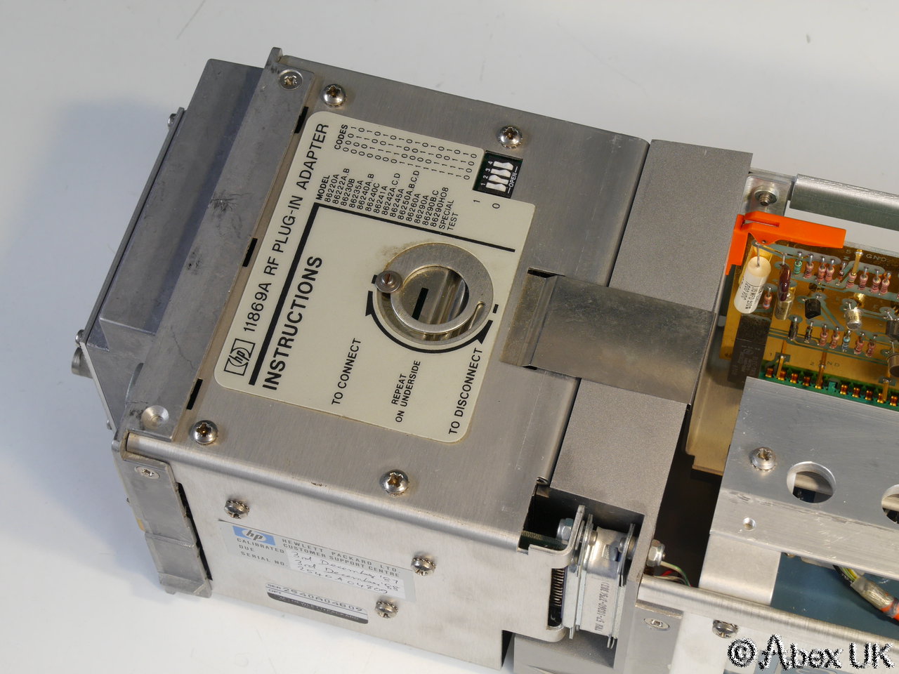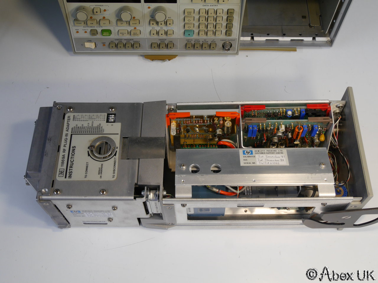 This is a complete HP (Agilent) 8350B sweep generator with an 86260A plug-in, covering 12-18GHz. The 86260A is fitted with a 11869A adaptor as shown below. Good cosmetic condition and in good working order.
