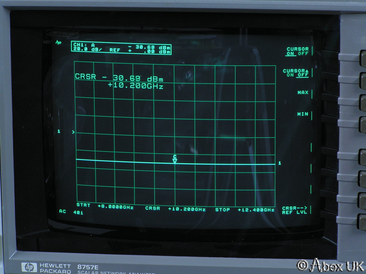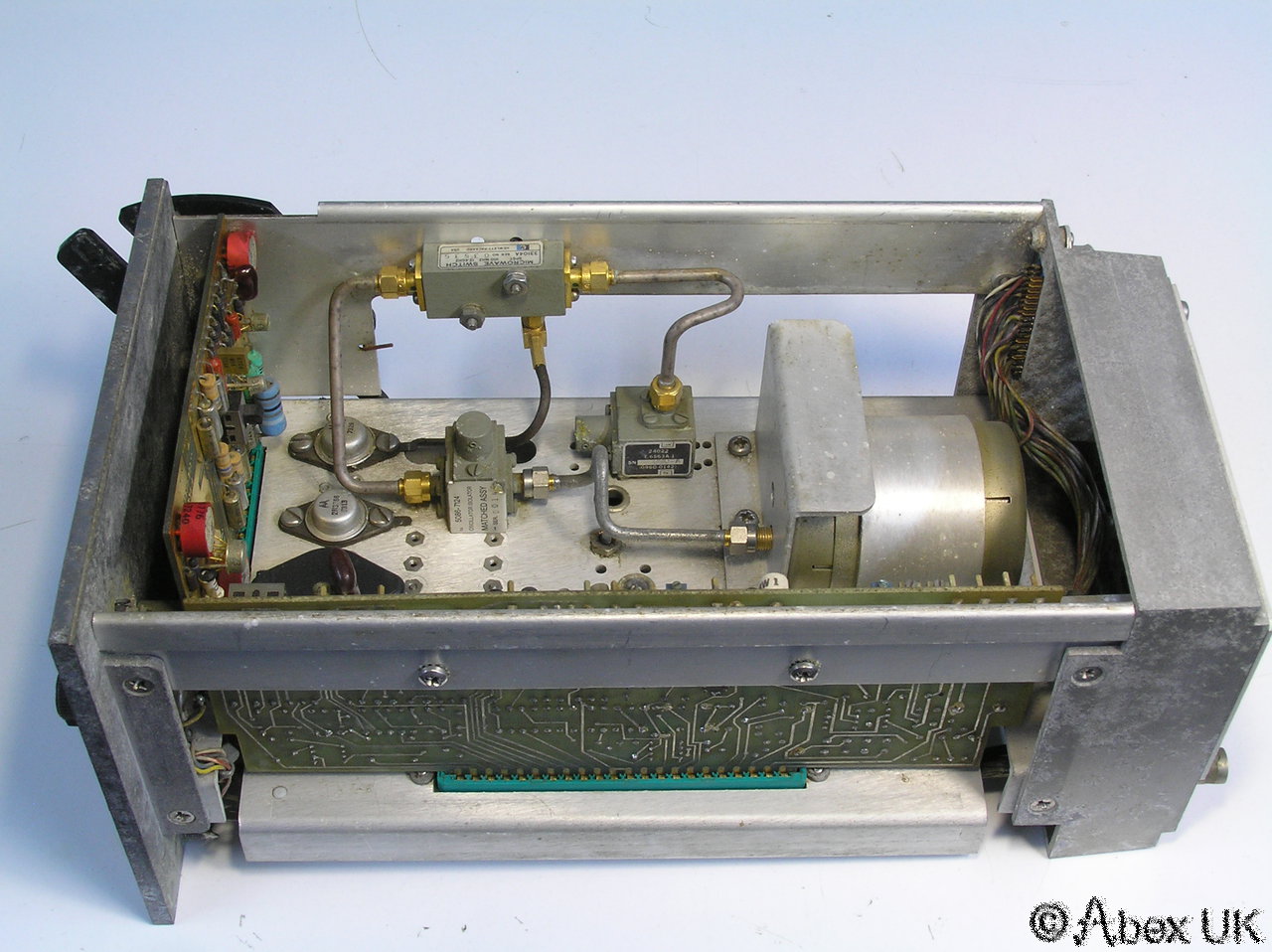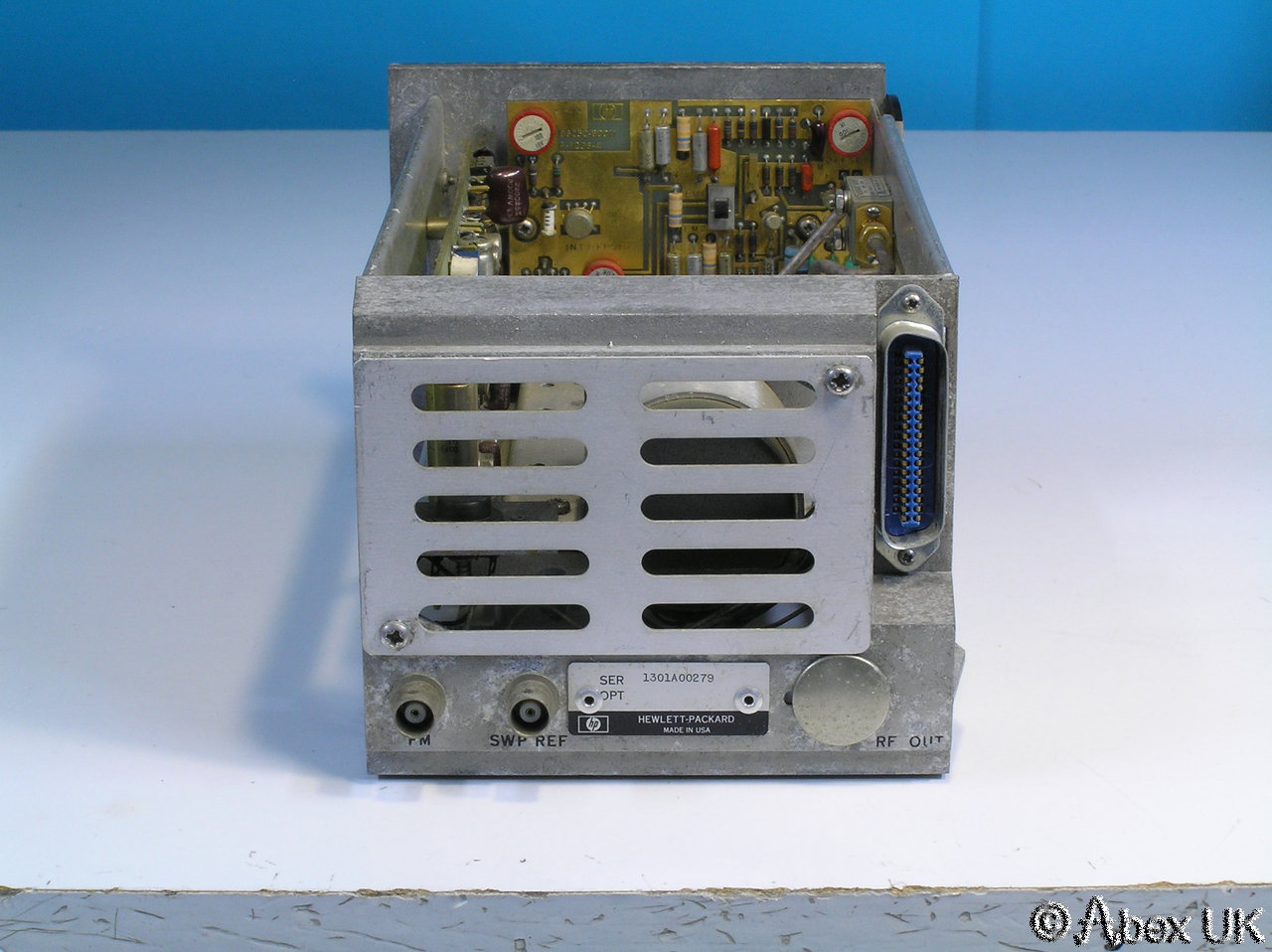 An 86250A RF plug-in covering 8.0 - 12.4GHz. Suits the 8620 series sweepers, or 8350B when used with a 11869A adaptor. In poor cosmetic condition, and not fully working. The RF output sweeps and levels, but the level is low (-30dBm)