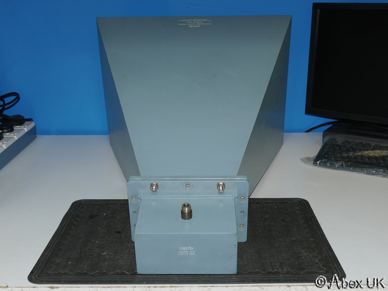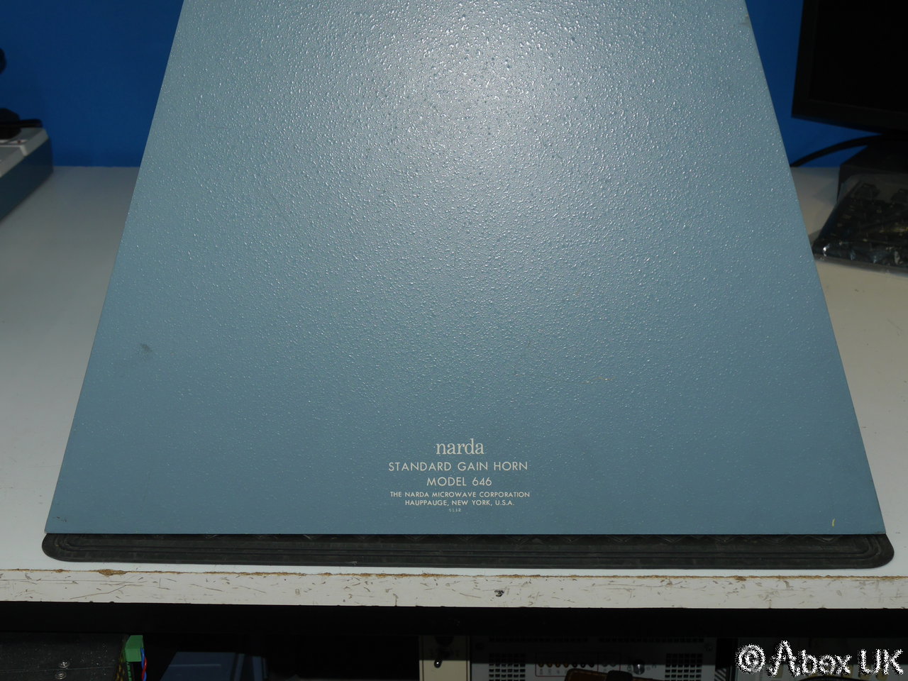 The Narda 646 is a standard gain microwave horn for L-band, 1.12-1.7GHz. Paired with the model 616 waveguide to N-type coax transition to provide a convenient test antenna solution. The 646 was the largest and lowest frequency variant of the Narda standard gain horns. It does not appear in the current Narda product brochure, presumably being a discontinued model.