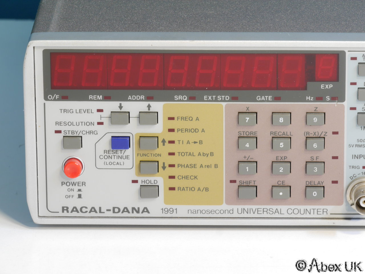 The Racal 1991 is a "Universal" counter timer, which means it will measure a variety of frequency/period and ratio measurements in respect of one or two inputs. This unit has the usual keyboard problem and will require repair.