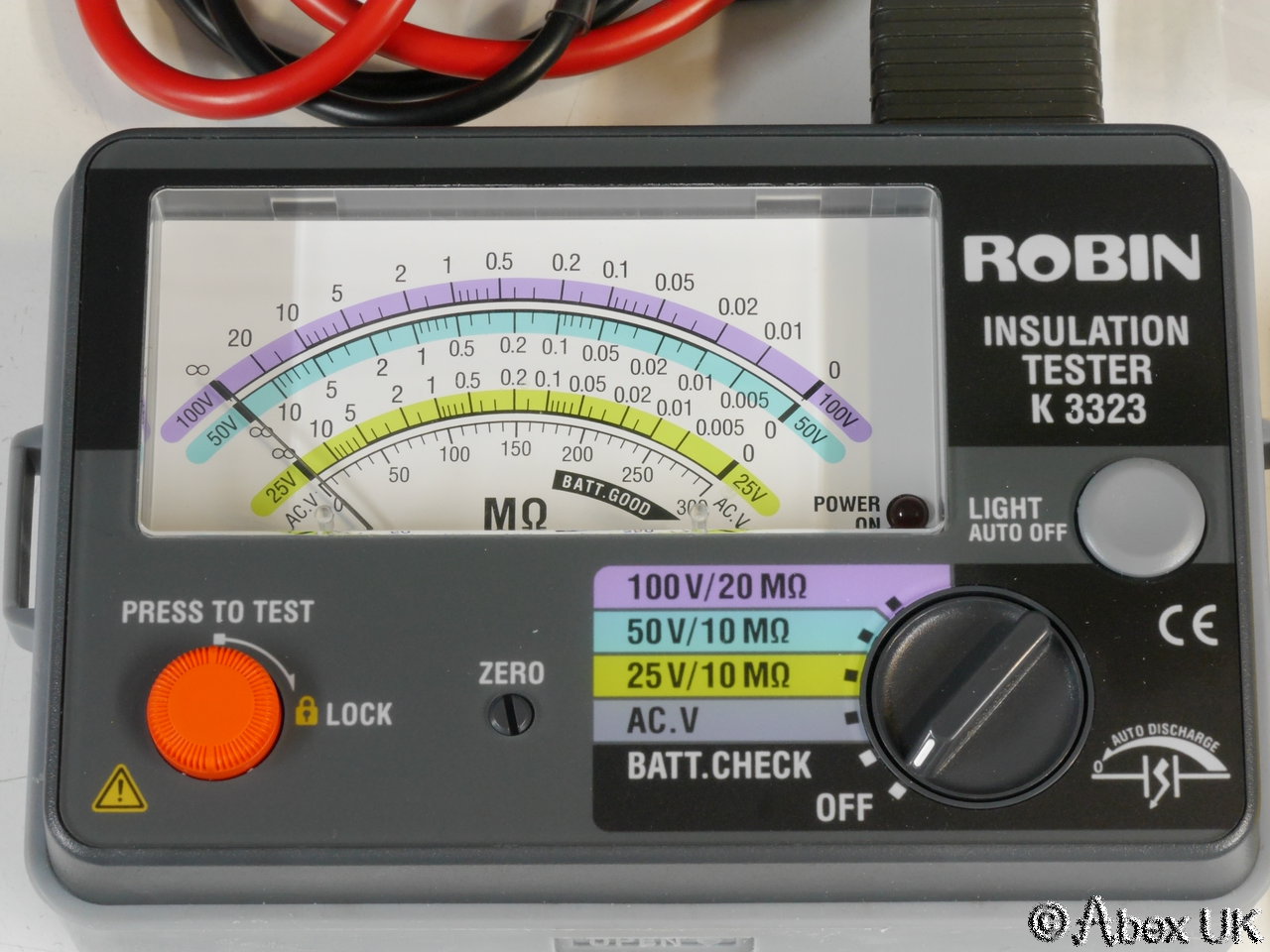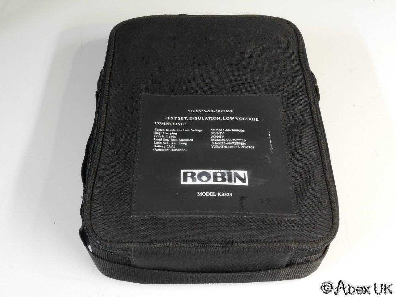 The Robin K3323 is an insulation / continuity tester which will provide a test voltage of 25, 50, or 100V, and also an ac voltmeter. This is a full kit, including the meter, 2 sets of short test leads, and one set of long test leads, all in a nice padded carry case. The meter itself is in excellent cosmetic condition, looks almost unused, and in good working order. Batteries NOT included (takes 6x AA).