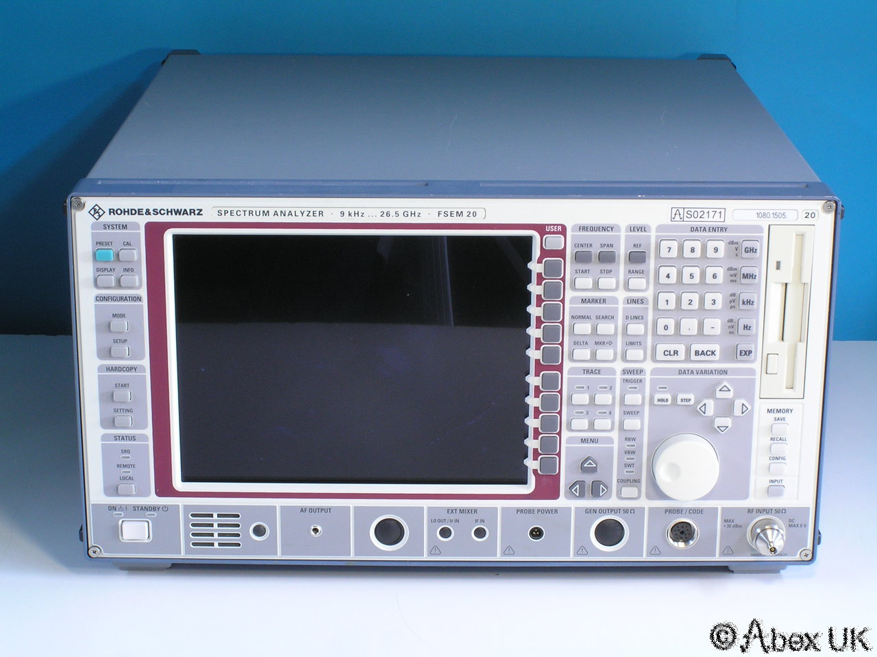 Rohde & Schwarz FSEM20Spectrum / Signal Analyser 9kHz - 26.5GHz(Serial Number 849318-001 , Stock Number s02171) |