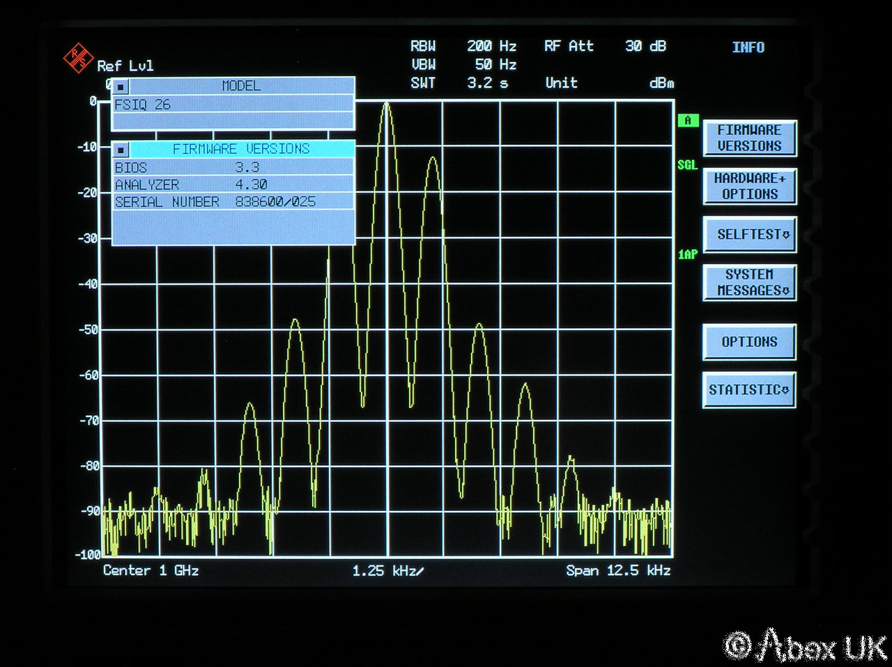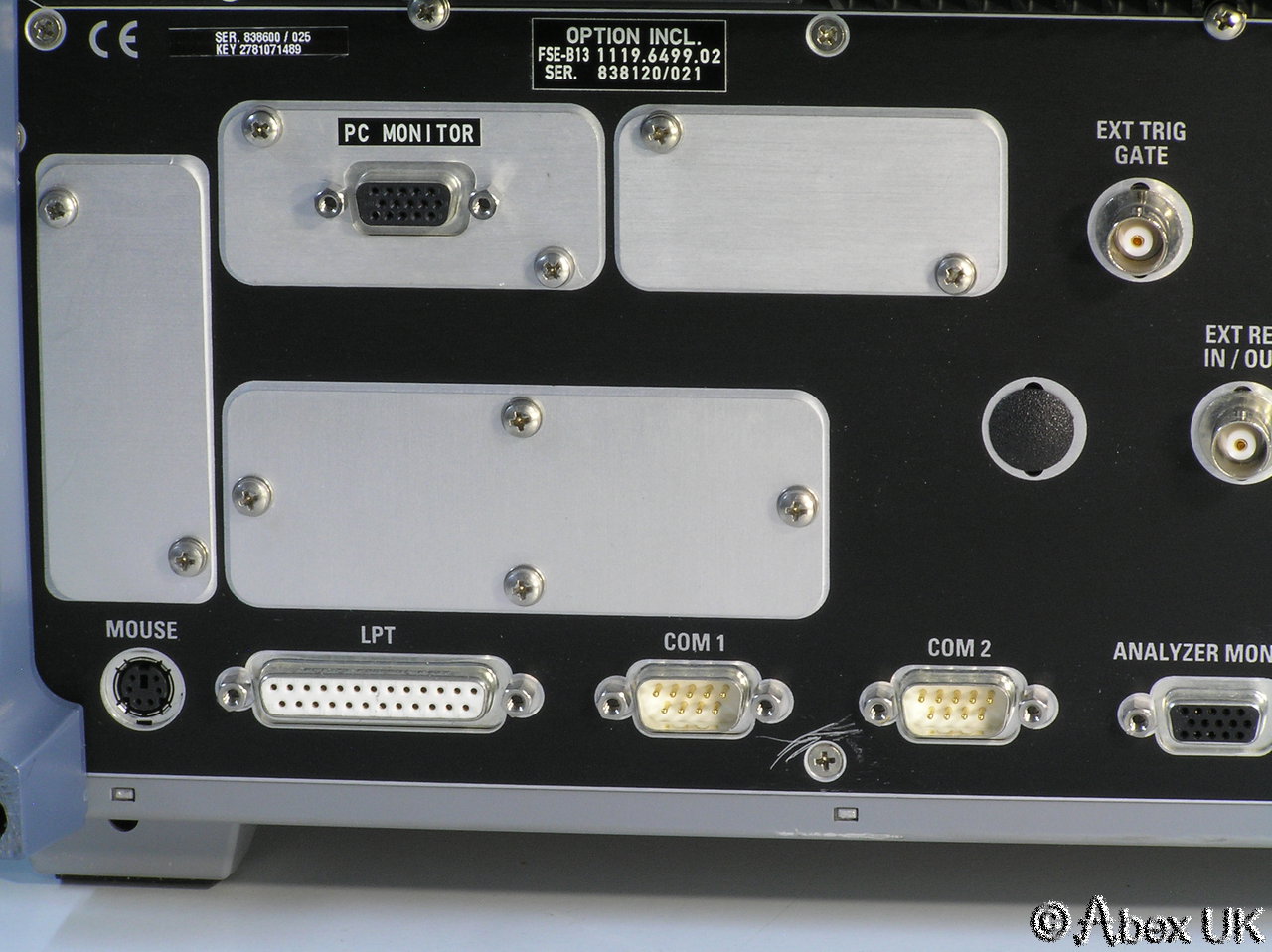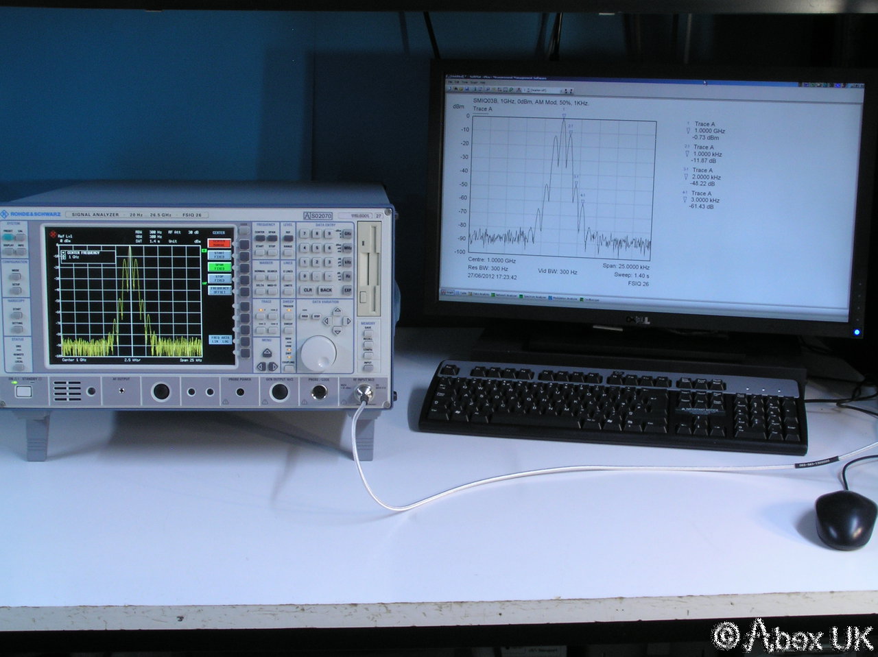 The FSIQ26 is an advanced signal analyser covering 20Hz - 26.5GHz. This unit has options B4, B5, B7 (Vector demod), and B13. It also has the FS-K4 phase noise software, and FS-K3 noise and gain analysis software. See below.