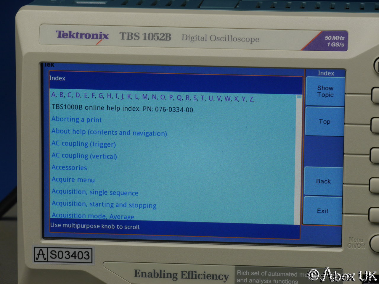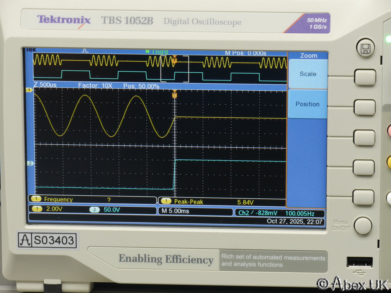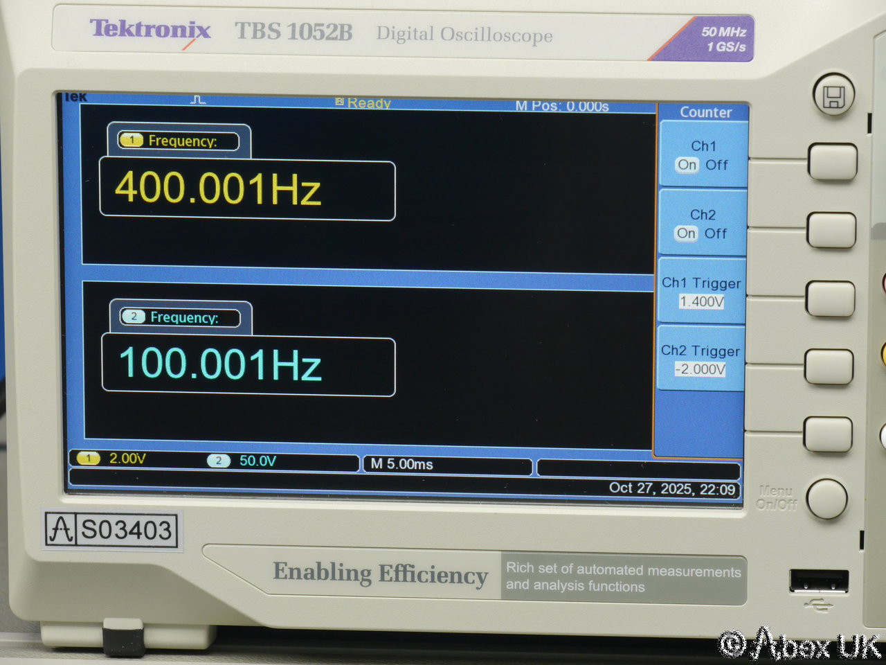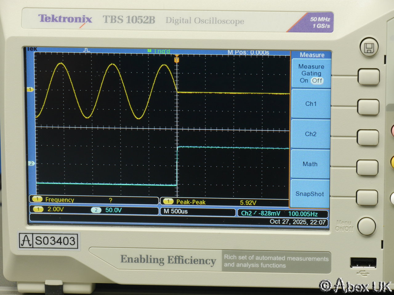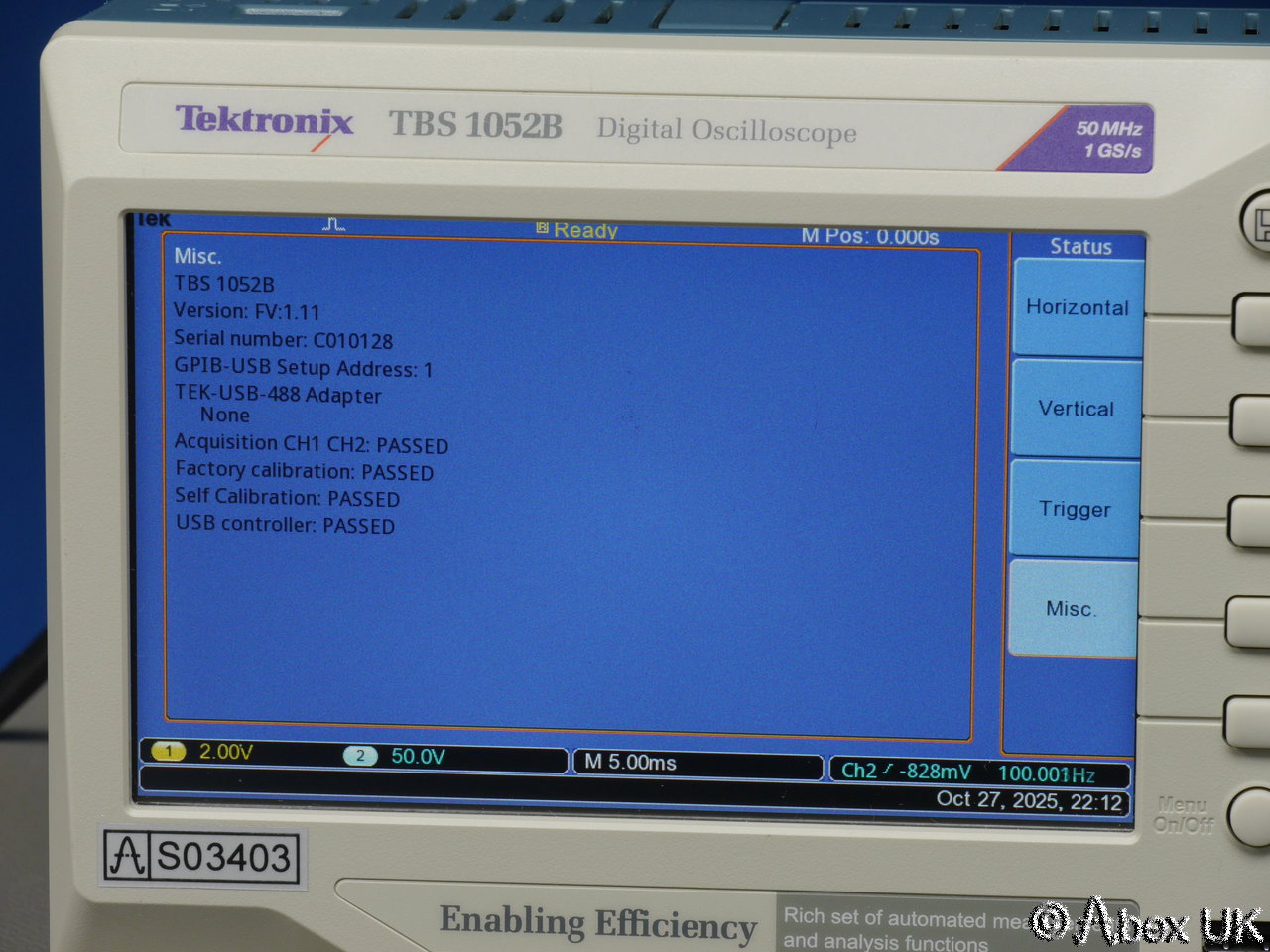 Tektronix TBS1052BDigital Oscilloscope 50MHz 1GS/s(Serial Number c010128 , Stock Number s03403) |