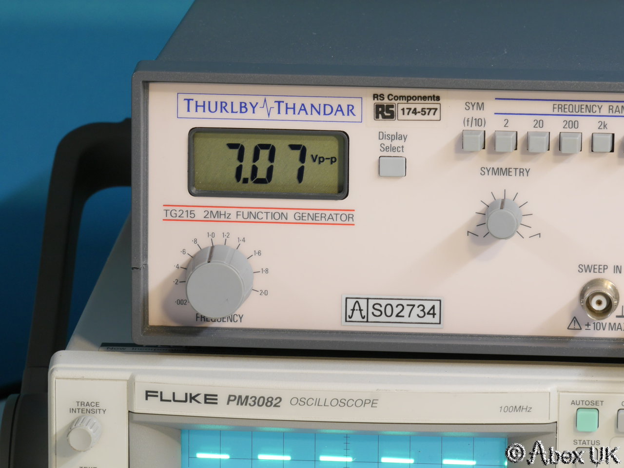 The TTI TG215 is a 2MHz function generator, providing sine, square and triangular waveforms. It is suitable for a variety of electronic test applications. The most notable feature of the TG215 is it's digital readout, which can be set to display frequency, p-p voltage, or offset voltage (d.c.). In good cosmetic condition and working as shown below.