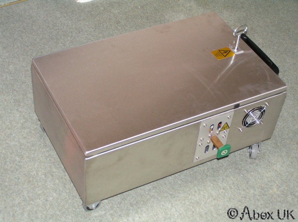 Once the lid is closed, there are no exposed high voltage parts and the lid can be locked as required by the customer. There is in fact a microswitch mounted on the lock which turns off the power if the lid is opened.